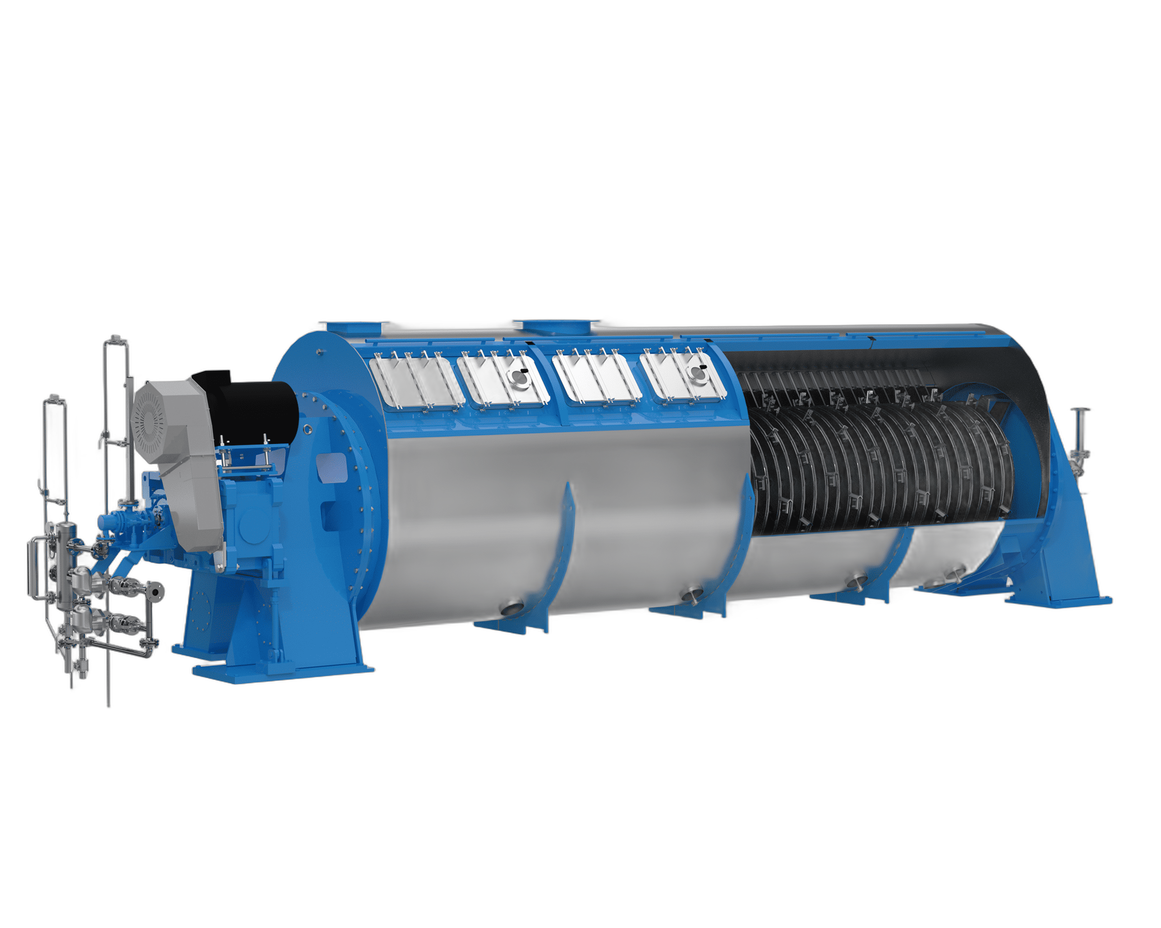 Пар проходит через полые трубки и диски с двумя рукавами, увеличивая площадь сушки и повышая эффективность.